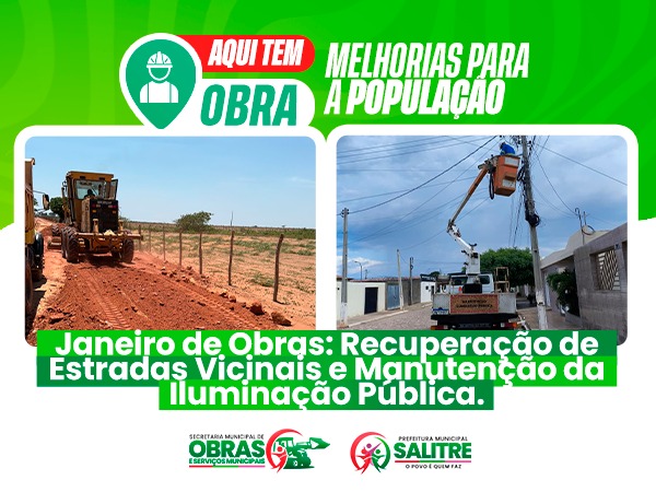 Esses esforços refletem o compromisso da administração "O POVO É QUEM FAZ!", em cuidar da cidade e promover melhorias em benefício de todas as comunidades. Com estradas recuperadas e uma iluminação pública eficiente, Salitre avança rumo a um futuro mais seguro e próspero para todos