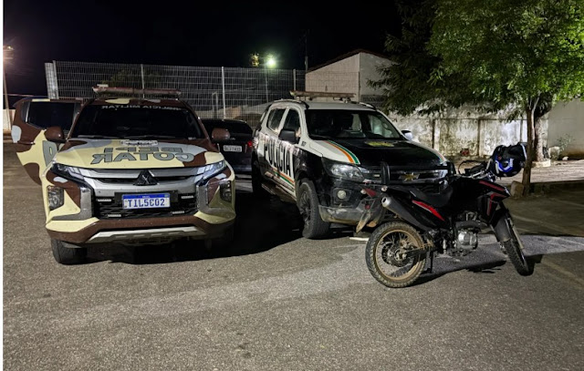 A motocicleta apreendida com o suspeito é uma Honda Bros de cor vermelha, que havia sido roubada na madrugada do dia 13 de fevereiro, na localidade de Ematuba. O veículo, que originalmente era vermelho, já havia sido envelopado de preto na tentativa de dificultar a identificação.