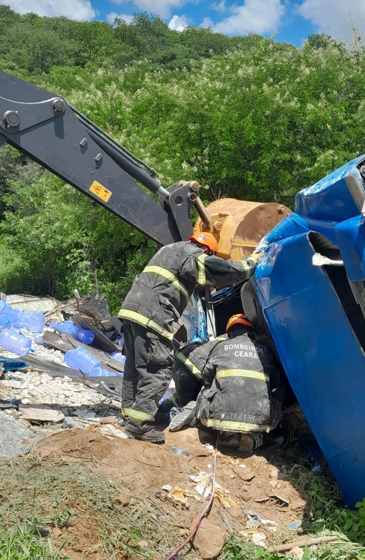 O veículo Mercedes Benz, cor azul, placas OXO-0F85, inscrição de Juazeiro do Norte, transportava uma carga de água mineiral com destino à cidade de Tauá, quando ocorreu o acidente.